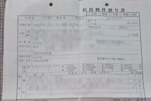 聞き取りの内容は、拾得物件預り書という用紙に従って行われました。